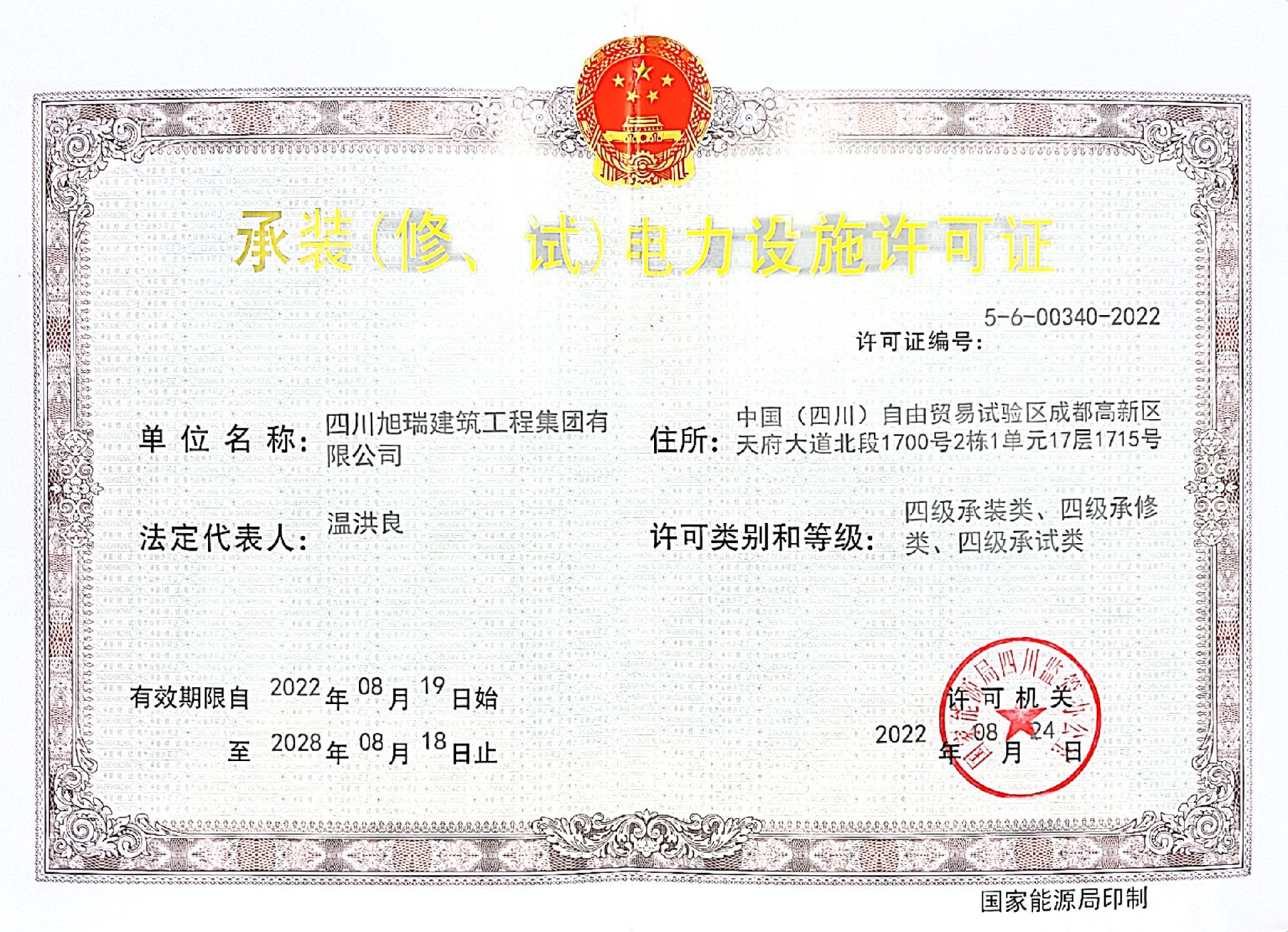 四川旭瑞建筑工程集團有限公司證書
