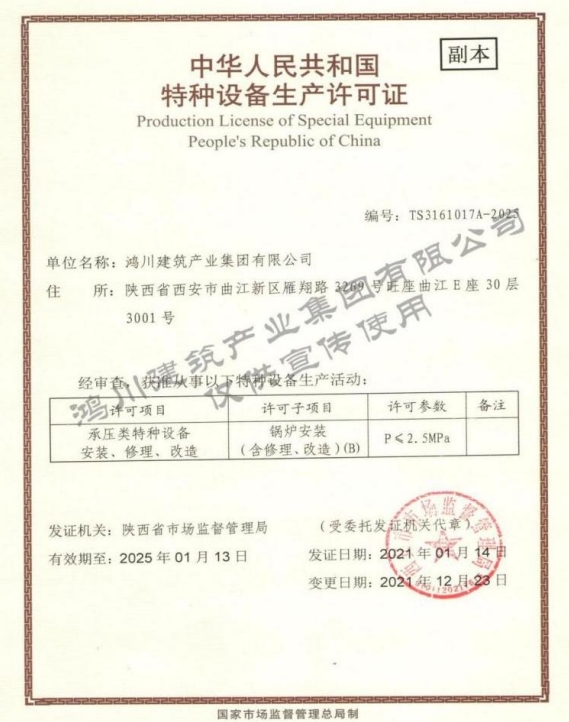 鴻川建筑產業集團有限公司證書